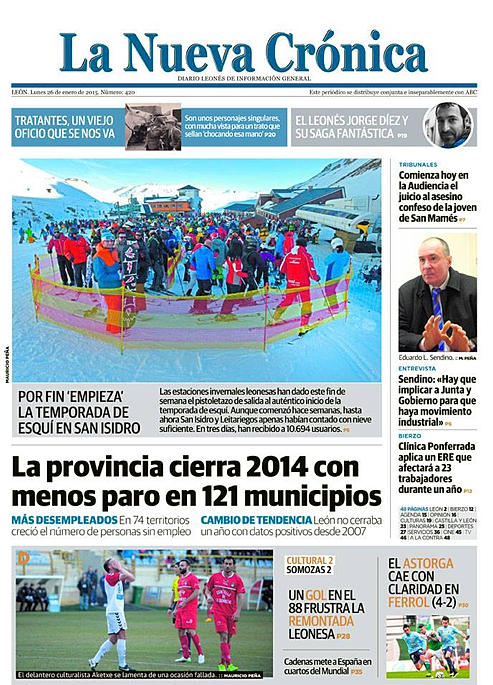 Noticia de la entrevista a Jorge DM en la portada del periódico La Nueva Crónica.